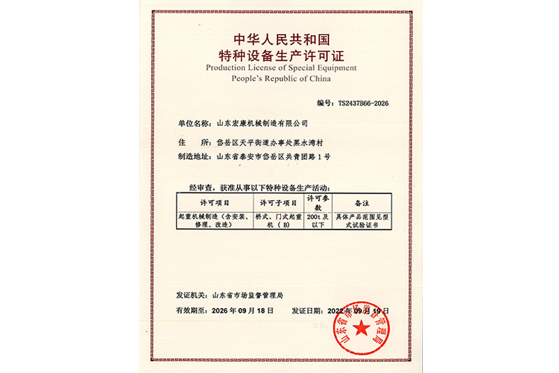 起重机械制造许可证(含安装修理改造)