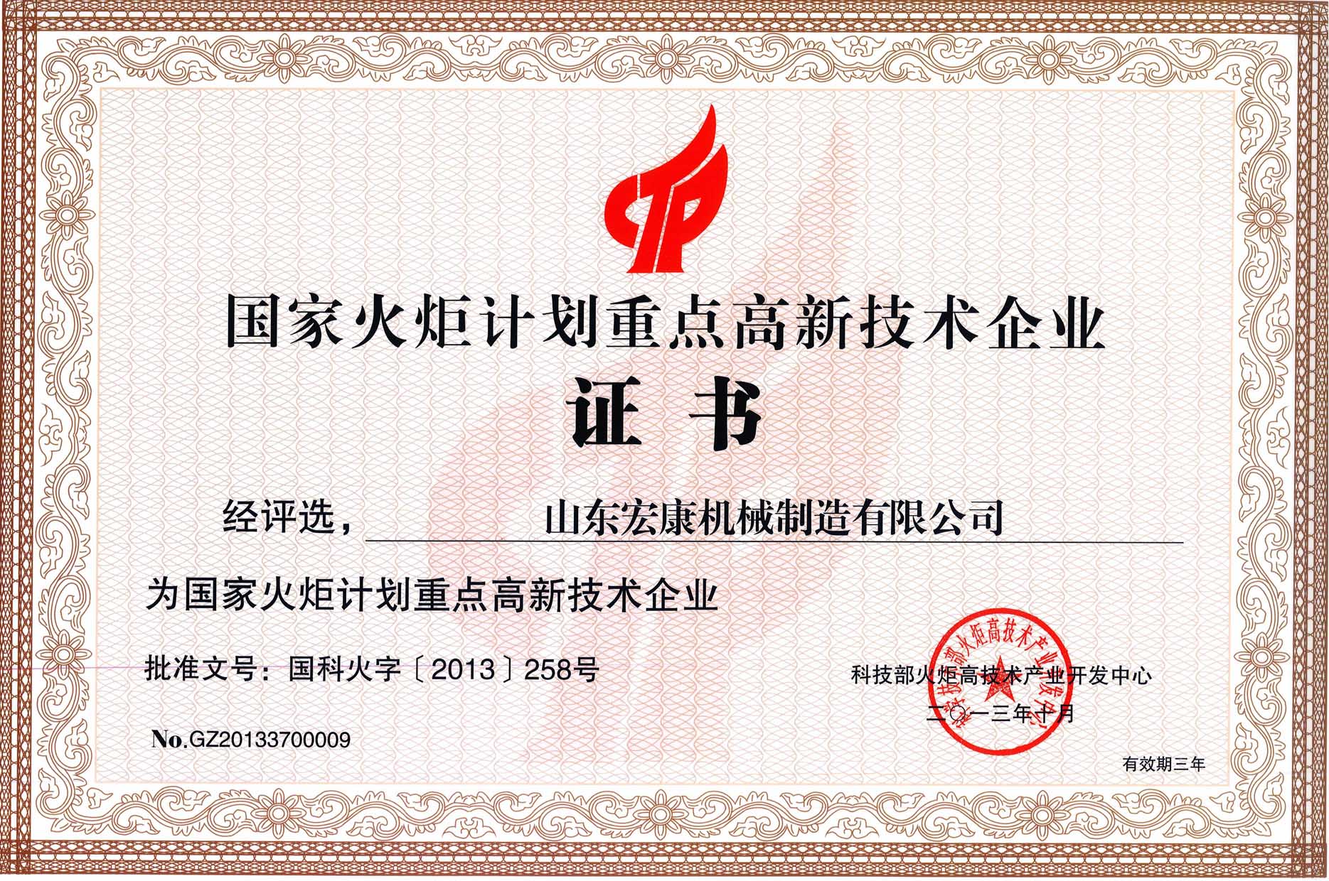 根据国家科技部火炬中心《关于发布2013年国家火炬计划重点高新技术企业评选结果的通知》(国科火字〔2013〕258号),集团公司被评选为国家火炬计划重点高新技术企业。