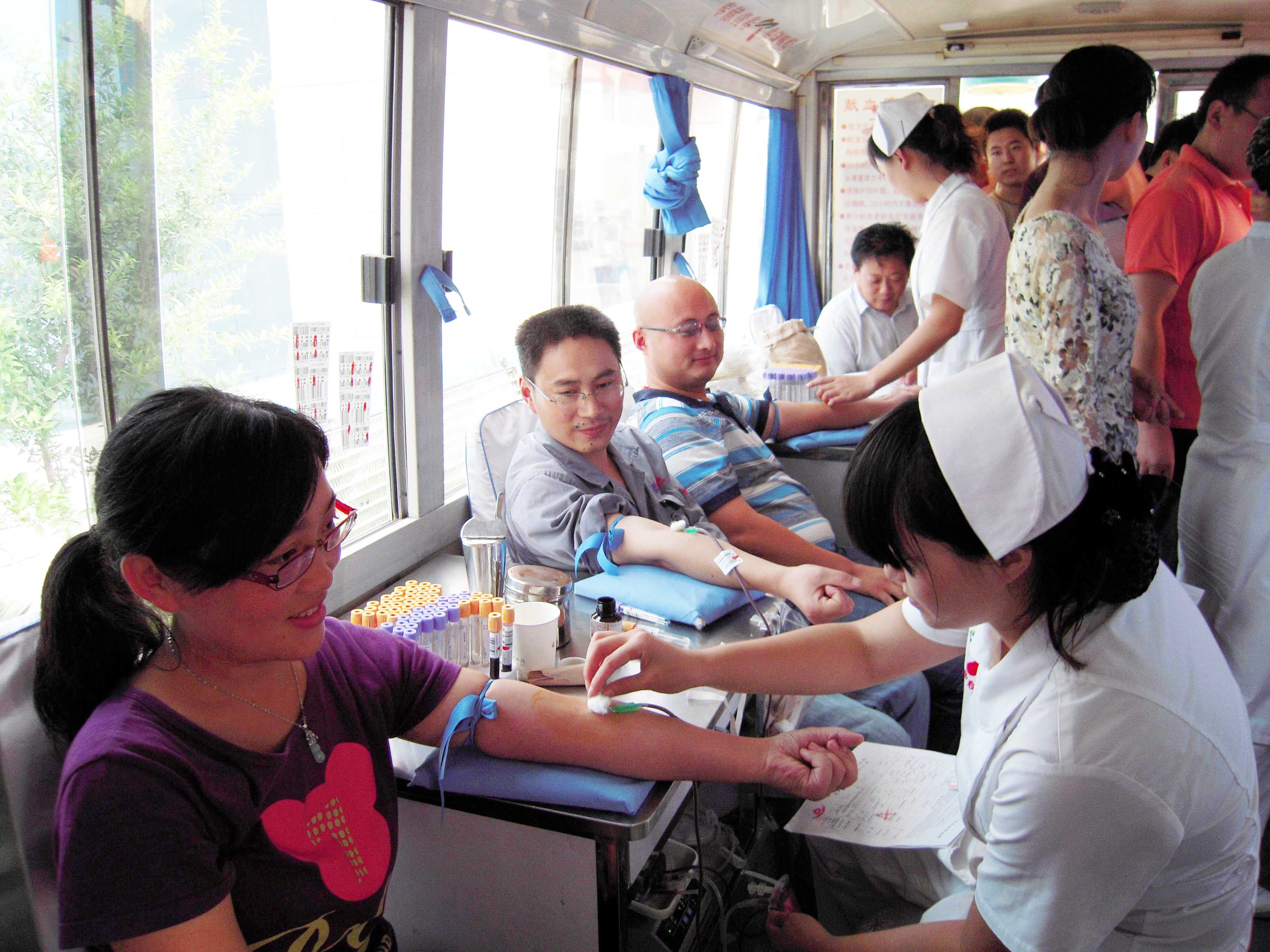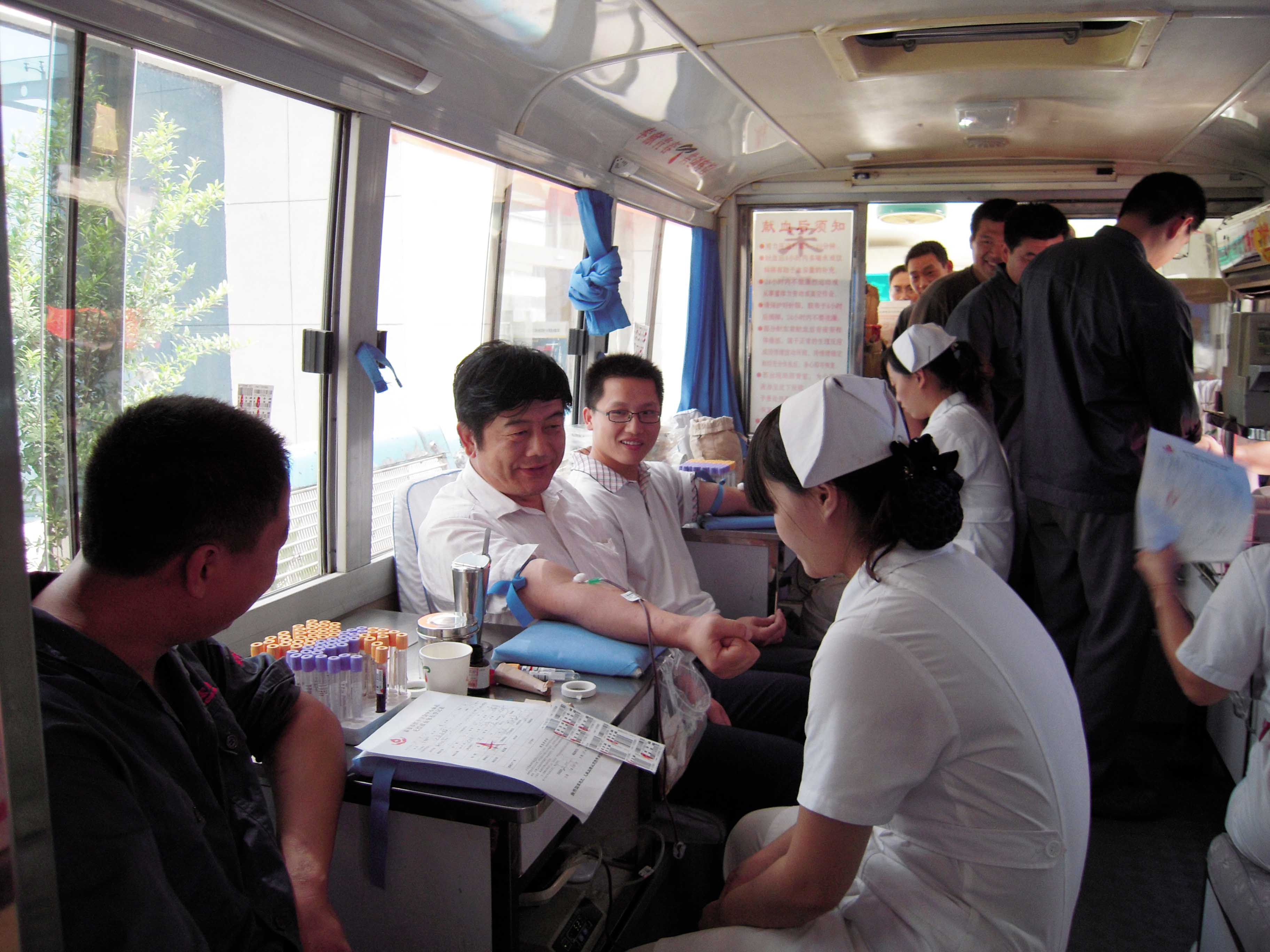 笔者看到,体检现场,献血车内,人头攒动,报名等待体检的人员排着长长的队伍个个跃跃欲试,献血车厢一直都坐满了人,宏大感人的场面展现了宏康人心系社会、无私奉献的仁义爱心和豪迈情怀。集团董事长、总经理康凤明虽然已接近献血年龄红线,却毅然献出了400毫升的热血,展示了一个企业家扶危济困、心系社会的拳拳之心和慷慨气魄。技术中心、销售公司、各分厂、车间部门负责人也都义无反顾地走上献血车,和员工们一道参加本次献血活动。爱心在涌动,献血从上午的8点30分一直持续到下午的5点30分,大家都为能够参与到这次爱心活动,承担起对社会的责任而感到光荣和自豪。本次献血活动,公司有近200名员工参与了献血,共献出6万多毫升各种血型的全血浆。另有近上百名人员因时间、体质、哺乳期、献血时间间隔不够等原因未能如愿献血。献血活动令血站的工作人员感动不已,他们对公司组织的献血活动给予高度评价和充分肯定。